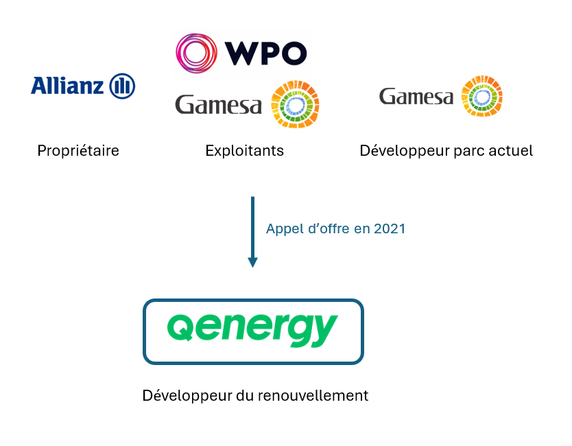 Allianz, propriétaire du parc, a lancé un appel d’offre en 2021 auquel QENERGY a participé. QENERGY a remporté le développement du renouvellement de plusieurs parcs en France.