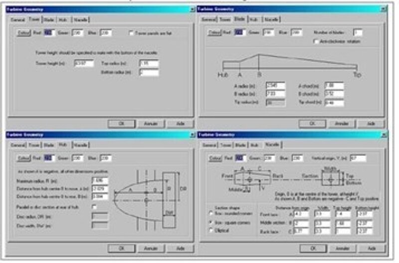 • Intégration au logiciel des données techniques concernant la géométrie des éoliennes